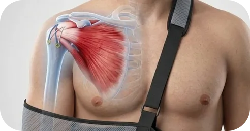 Most patients wear a sling for several weeks to protect the repair while early healing takes place. During this time, gentle guided motion is introduced to keep the shoulder mobile without stressing the repair.